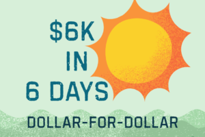 From June 20 – 25, we have a generous donor who will MATCH your donation dollar-for-dollar until we reach $6,000 raised. Our goal is to meet this challenge in just 6 Days (by Wednesday, June 25). That means your gift will be doubled to help twice as many families in need!