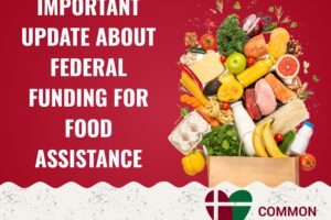 On April 22, we were informed that due to a 50% cut in federal funding for The Emergency Food Assistance Program (TEFAP) we would not receive any TEFAP food allocations for the remainder of the month and at this time the federal distribution for May is unclear. TEFAP – administered through Second Harvest – is a major source of nonperishables, meat, and produce for Common Heart food pantries.
